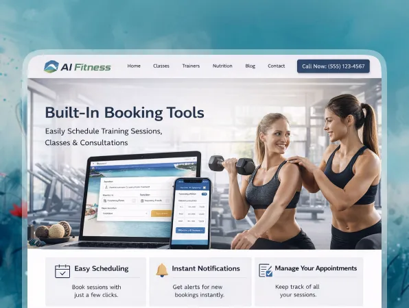 Our fitness website builder can create pages, class and program listings, trainer profiles, forms, and booking logic in one go.