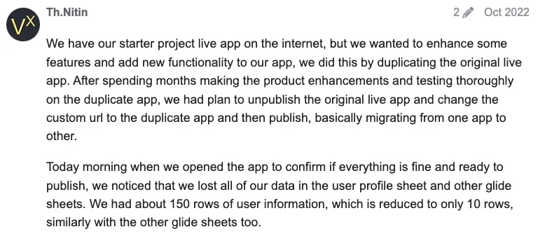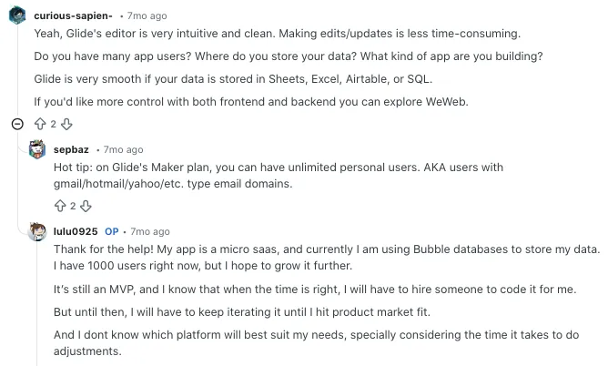 That same thread also mentioned that Glide works best for internal tools or small business apps, not necessarily for scalable products.