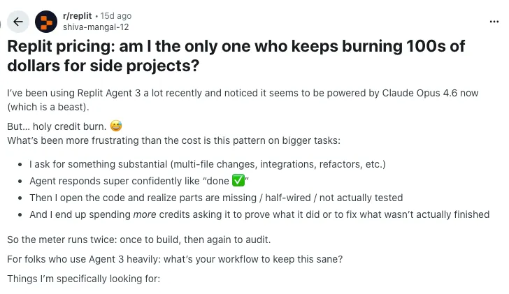 One of the clearest ways to understand how Replit’s pricing feels in real life is to watch users react in public threads. I went through multiple Reddit discussions where people share bills, usage patterns, and switching decisions. Here’s what keeps coming up again and again.