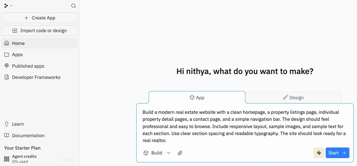 The moment I dropped the real estate prompt into both platforms, their personalities showed themselves right away. They might live in the same AI builder category, but the way they kick off a project couldn’t be more different.