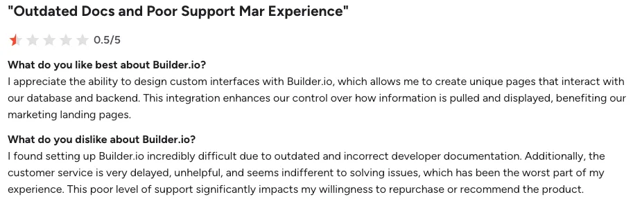 After digging through user reviews, community threads, and real-world feedback, a few consistent pain points keep showing up. These aren’t edge cases — they come from teams actively using Builder.io in production.