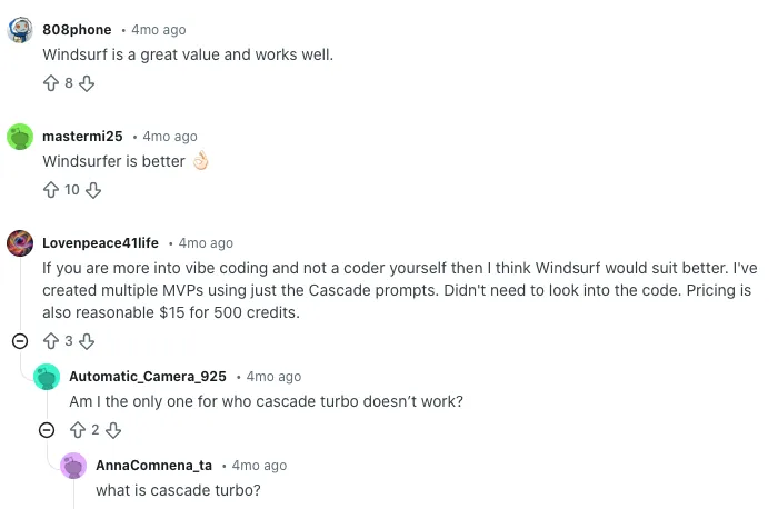 Some conversations also focus on how credits disappear when the AI doesn’t behave as expected. In one Reddit thread about older credit systems (before Windsurf simplified things), people talked about credits burning through quickly when the model kept looping or failing.